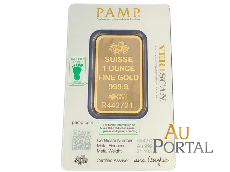 Zlatý slitek největšího producenta zlata na světě, certifikované švýcarské společnosti PAMP,
